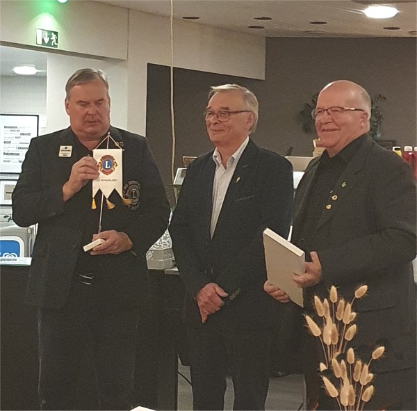 ![]() Den 12.3.2025 överläts intäkten från StopCancergalan till Österbottens cancerförening. På bilden cancerföreningens Markku Suoranta och från lions Michael Kronlund och Johan Lillqvist
